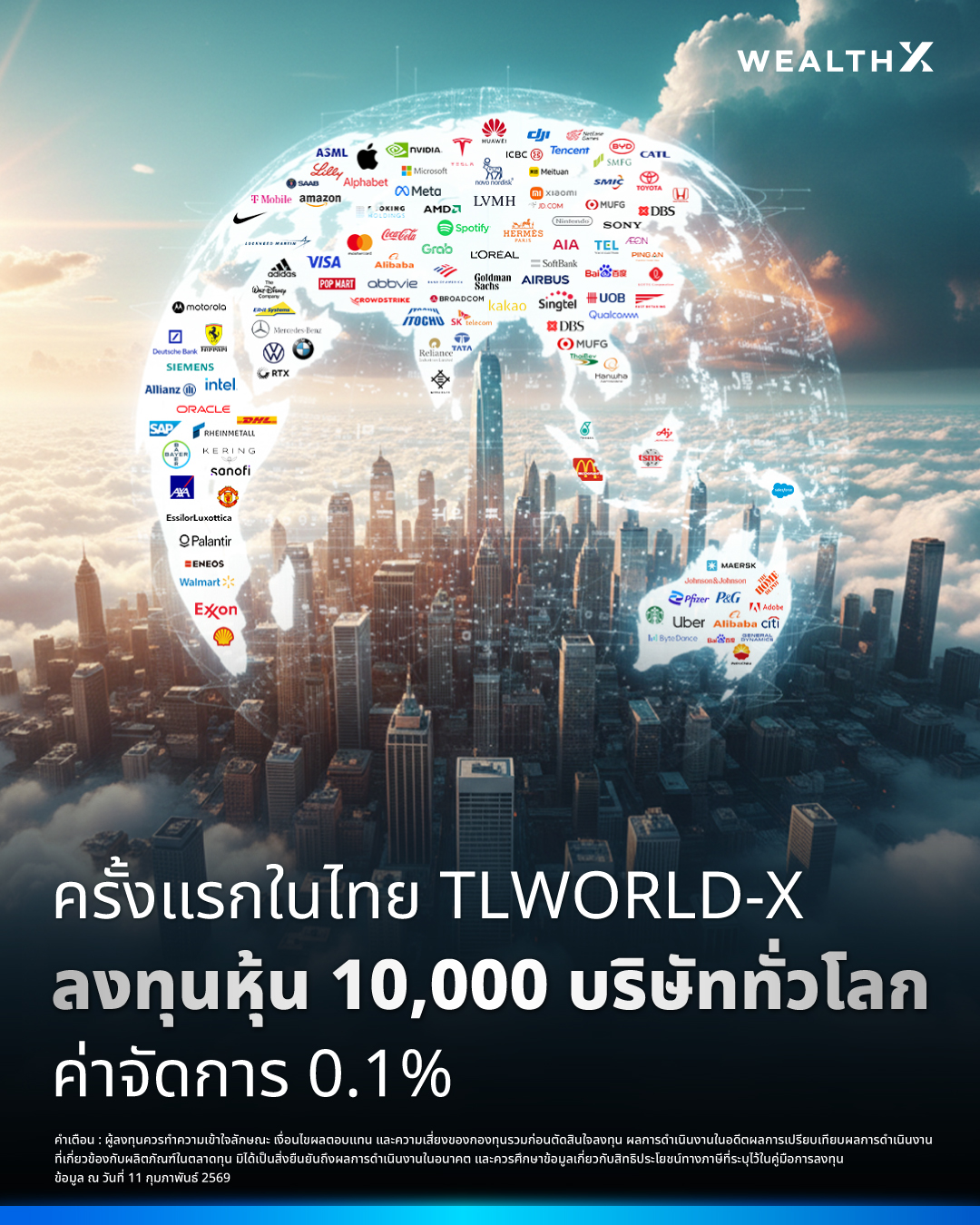 WealthX แนะนำซื้อกองทุน TLWORLD-X ลงทุนหุ้นทั่วโลกค่าจัดการ 0.1% ในเหตุการณ์นี้ ดูรายละเอียดกองทุนที่ www.wealthx.co/funds/TLWORLD-X